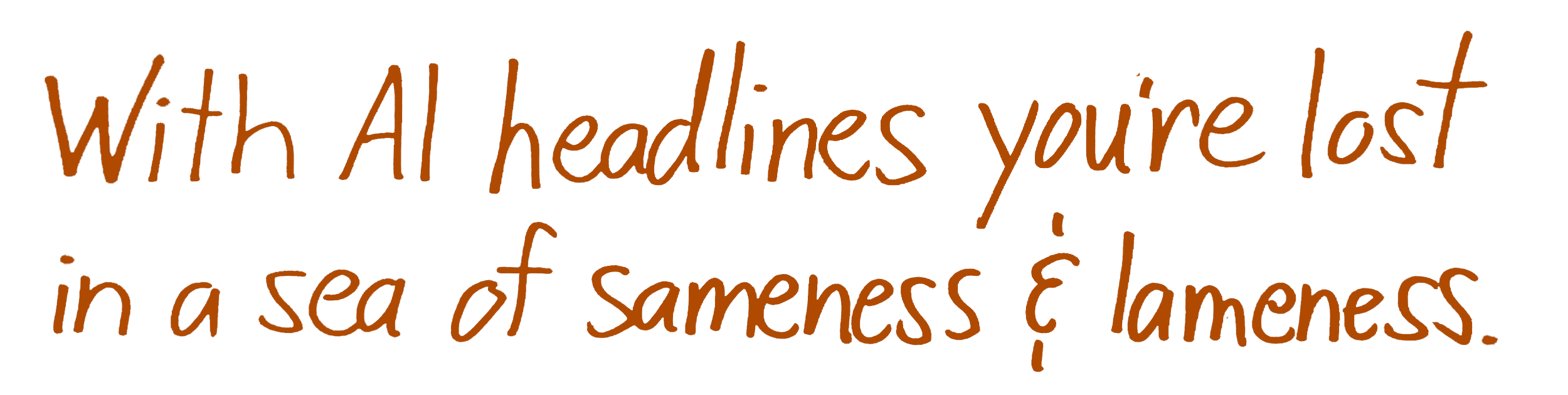 If you want instant free mediocrity, AI is absolutely the right choice. If want ideas that delight your customers, now you have Five Great Headlines. Invest $500 and wait just three business days.